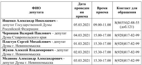 График приема граждан по личным вопросам депутатами,