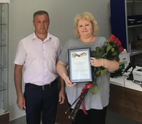 В преддверии Дня российской почты депутат Думы города Невинномысска Николай Фуртас поздравил сотрудников Невинномысского почтамта с наступающим праздником и вручил благодарность Думы города за успехи в профессиональной деятельности и образцовое выполнение своих трудовых обязанностей старшему кассиру Главной почты Светлане Евгеньевне Васильевой.
