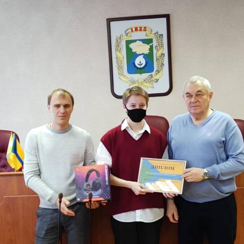 Сегодня состоялось награждение победителей конкурса рисунка "Нет терроризму". Председатель Думы города Александр Медяник и заместитель главы администрации города Александр Савченко вручили победителям дипломы и ценные подарки.