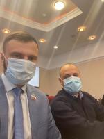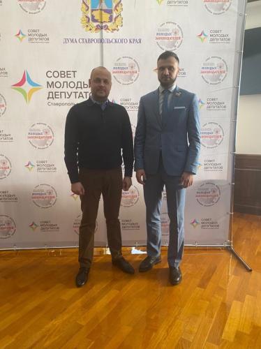 Сегодня в Думе Ставропольского края состоялось заседание Совета молодых депутатов Ставропольского края, в работе которого приняли участие два молодых депутата Думы города Невинномысска - Максим Вилков и Станислав Шаршуков.