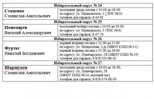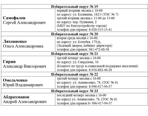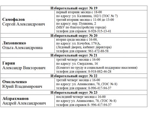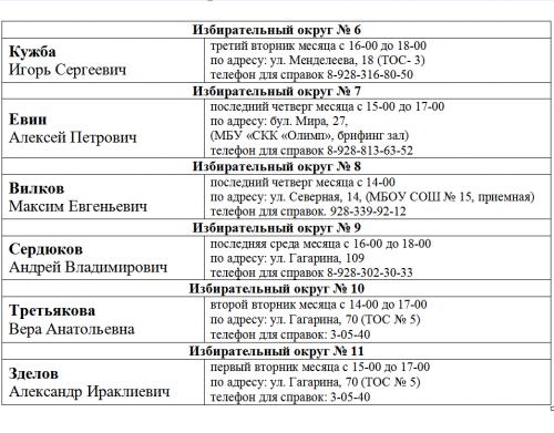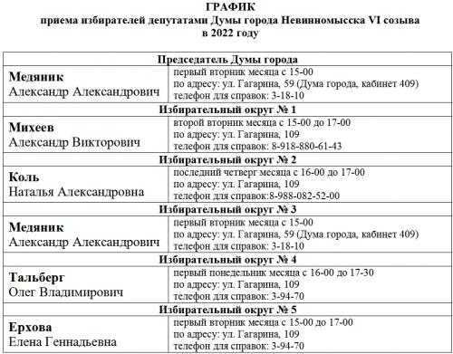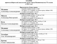 ГРАФИК приема избирателей депутатами Думы города Невинномысска VI созыва в 2022 году