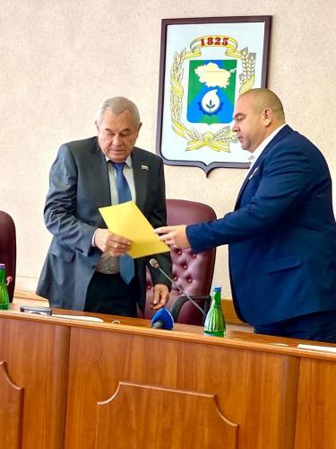 НовостиОчередное заседание Думы города Невинномысска26.05.2022 Сегодня под председательством Александра Медяника состоялось очередное заседание Думы города Невинномысска. Заседание началось с приятного события. По поручению Губернатора Ставропольского края Владимира Владимирова глава города Герой России Михаил Миненков вручил председателю Думы города Александру Медянику Благодарственное письмо Губернатора Ставропольского края за активное участие в работе штабов общественной поддержки. Далее Дума приступила к работе по вопросам повестки дня. Основным вопросом повестки дня был вопрос "О присвоении наименования элементу улично-дорожной сети в границах города Невинномысска". Вопрос был внесен главой города по инициативе Невинномысского отделения Всероссийской общественной организации "Боевое братство". Проект предусматривал присвоение отремонтированной дороге от перекрестка улиц Апанасенко и Приборостроительной до улицы Калинина имени Героя России Владимира Жоги. Звание Героя России Владимиру Жоге, герою ДНР, было присвоено Президентом России Владимиром Путиным (посмертно). Во время обсуждения данного вопроса в режиме видеосвязи к депутатам присоединились из ДНР Артем Жога, отец Владимира Жоги, а из Москвы - депутат ГД РФ Ольга Тимофеева. Решение по этому вопросу было принято депутатами единогласно. Затем депутаты перешли к рассмотрению других вопросов повестки дня. Последние новости25.02.2026 27 февраля 2026 года в 10 часов в зале заседаний Думы города состоится внеочередное заседание Думы города Невинномысска24.02.2026 25 февраля 2026 года в 10 часов в зале заседаний Думы города состоится очередное заседание Думы города Невинномысска 15.02.2026 В честь подвига и памяти 14.02.2026 Средняя школа №3 отметила 80-летний юбилей встречей выпускников разных поколений 14.02.2026 В МБОУ Лицей №6 состоялось открытие класса БПЛА имени Героя Российской Федерации Владимира Жоги. 14.02.2026 Межрегиональный отборочный турнир по смешанным единоборствам среди казаков прошёл во Дворце спорта «Олимп» 14.02.2026 Оказываем всестороннюю поддержку воинским подразделениям и госпиталям Донбасса и Херсонской области. 14.02.2026 «Голоса Фронта» 09.02.2026 Сегодня в России отмечается День работника гражданской авиации 08.02.2026 Россия — центр научных открытий |