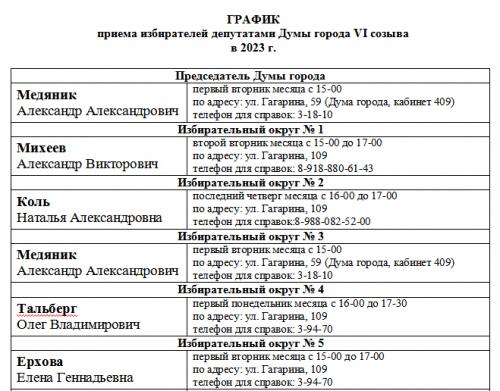 ГРАФИК приема избирателей депутатами Думы города в 2023 году