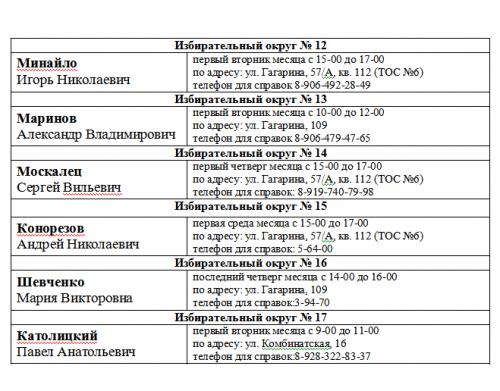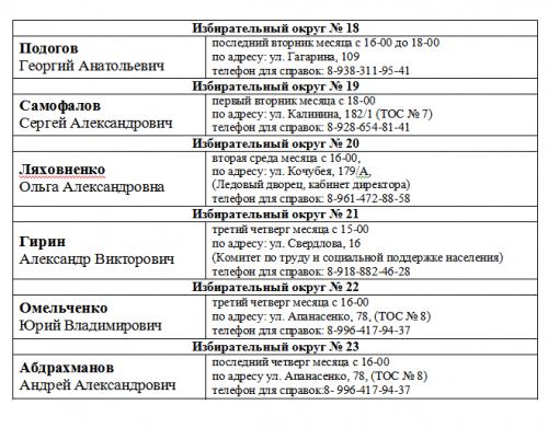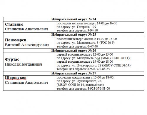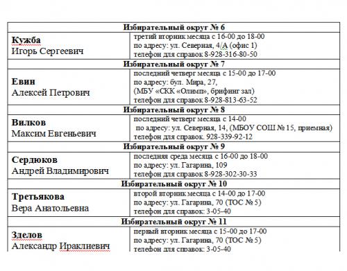 ГРАФИК приема избирателей депутатами Думы города Невинномысска VI созыва в 2023 году.