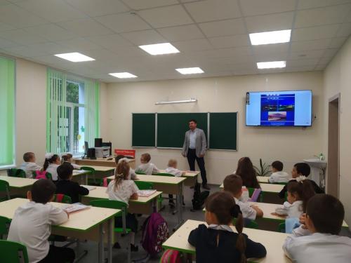 В канун празднования Дня города депутат Думы Георгий Подогов провел для первоклассников школы N 3 классный час на тему "Родной край. Родной Невинномысск'.