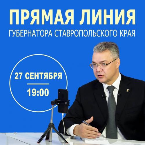 Сегодня, 27 сентября, губернатор Ставропольского края Владимир Владимирович проведет очередную прямую линию. Начало в 19:00. Трансляция будет вестись на телеканалах «Свое ТВ» и «Кавказ 24», а также на личных страницах губернатора в Телеграме, ВКонтакте и в Одноклассниках.