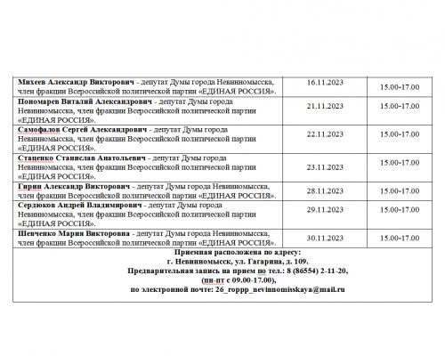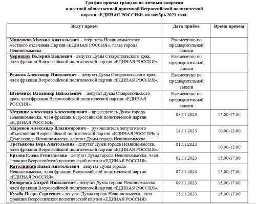 партии «ЕДИНАЯ РОССИЯ» на ноябрь 2023 года.