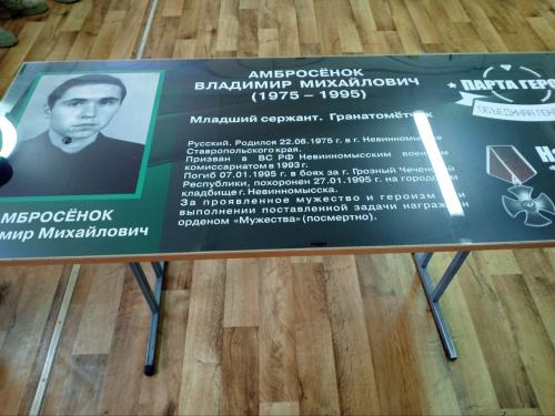 НовостиВ рамках патриотического проекта Партии «Единая Россия» состоялась акция «Парта Героя».08.12.2023 Сегодня в школах города в преддверии праздника Дня Героев Отечества в рамках патриотического проекта Партии «Единая Россия» состоялась акция «Парта Героя». Парта Героя – это ученическая парта с размещенной на ней информацией о заслуженном человеке, герое, учащемся школы, защитнике Отечества с его фотографией, биографией, героическим путем. В СОШ № 20 депутат Думы Мария Шевченко и депутат Думы, председатель общественной организации «Боевое братство» Игорь Кужба приняли участие в уроке мужества и открыли Парту Героя имени Вячеслава Александровича Яковлева. Вячеслав закончил СОШ № 20 в 2016 году. Погиб в боях на Донбассе. Награжден орденом «Мужества» (посмертно). На уроке мужества молодые зарничники показали свое мастерство в владении приемами рукопашного боя, в сборке-разборке автомата. В ходе беседы ребята активно задавали вопросы гостям. В СОШ № 1 депутат Думы Вера Третьякова вместе с учащимися открыла Парту Героя имени Амбросёнка Владимира Михайловича, погибшего в 1995 году в г.Грозном, награждённого орденом «Мужества» (посмертно). Каждая Парта Героя – это история подвига, который вдохновляет детей учиться ещё лучше и делать больше хорошего для своих близких, своей школы и нашей страны. Низкий поклон Героям и вечная им память! Последние новости27.12.2025 С днем спасателя!27.12.2025 Эстафета добрых дел: «Добрая Елка» продолжает дарить чудеса 27.12.2025 В Невинномысске прошла спартакиада для особенных детей 27.12.2025 Дума города помогает Деду Морозу исполнять желания 27.12.2025 Новогоднее чудо для детей микрорайона ТОС №5 27.12.2025 Волшебство в действии: депутат помогает Деду Морозу исполнить детскую мечту 27.12.2025 Сказка пришла в ТОС 7 27.12.2025 В преддверии Нового года, по доброй традиции, был организован праздничный утренник совместно с председателем территориального совета ТОС № 7. 26.12.2025 Налоги, помощь семьям и спорт. Коротко о главном с заседания Думы 26.12.2025 «Белоснежка и семь гномов» |