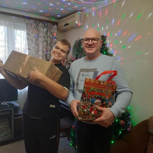 Депутат Думы Игорь Минайло вручил подарок от Деда Мороза 16-летнему Герману, который очень любит петь и танцевать!
