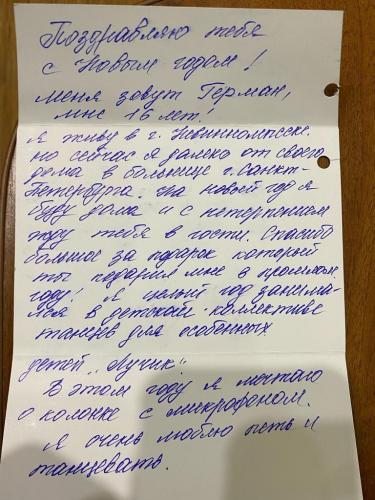 Герман весь 2023 год занимался в детском коллективе танцев «Лучик» и хотел, чтобы Дед Мороз подарил ему акустическую колонку с микрофоном.