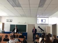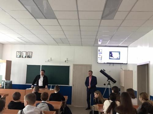 Депутат Думы Георгий Подогов провел открытый урок и презентовал открытие Астрономического кружка в МБОУ СОШ №2 имени О.И. Скрипочки. Активное участие в открытом уроке принял директор школы М.А. Маланин.