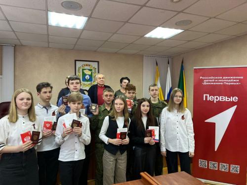 Сегодня председатель Думы, Почётный гражданин города Александр Медяник в торжественной обстановке в рамках Всероссийской акции "Мы - граждане России" вручил документ, удостоверяющий личность - паспорт гражданина Российской Федерации, школьникам города, членам молодежной организации «Движение первых».