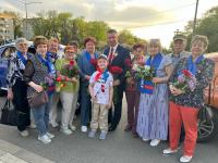 Депутаты, жители и молодёжь города собрались на площади, чтобы в торжественной и праздничной обстановке поприветствовать участников ставшей уже традиционной