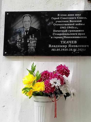 В канун, 9 мая, в Невинномысске прошел торжественный митинг памяти героя Советского Союза Владимира Яковлевича Ткачева, посвященный Дню Победы. Мероприятие было организовано Территориальным общественным советом №5, при поддержке МБОУ СОШ №1 и депутатов Думы города, Зделова Александра Ираклиевича и Третьяковой Веры Анатольевны.