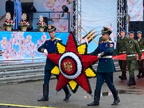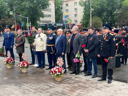 По традиции после праздничного шествия участники митинга почтили минутой молчания память всех павших и погибших в годы Великой Отечественной войны и возложили цветы к Вечному огню у обелиска "Вечная Слава".