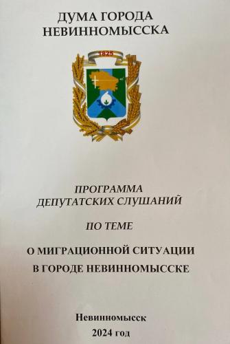 НовостиВ Думе города прошли депутатские слушания по вопросу «О миграционной ситуации в Невинномысске»26.06.2024 Сегодня в Думе города Невинномысска под председательством Александра Медяника прошли депутатские слушания по вопросу «О миграционной ситуации в Невинномысске», подготовленные по инициативе комитета Думы города Невинномысска по общественной безопасности (председатель комитета Алексей Евин). В слушаниях приняли участие депутаты, заместитель главы администрации города Василий Жданов, заместитель начальника полиции по охране общественного порядка отдела МВД России по городу Невинномысску Виктор Туманьянц, начальник отдела по вопросам миграции отдела МВД России по городу Невинномысску Сергей Тимофеев, директор Государственного казенного учреждения «Центр занятости населения города Невинномысска» Юлия Чугунова, председатель территориального объединения организаций профсоюзов города Невинномысска Габитова Татьяна Дмитриевна, представители средств массовой информации. Открывая заседание, председатель Думы города Александр Медяник отметил своевременность обсуждения проблемы миграции на площадке представительного органа города Невинномысска. «Цель нашего сегодняшнего мероприятия – анализ ситуации в сфере миграции на территории города, изучение проблем в этой сфере, взаимодействия органов государственной власти и органов местного самоуправления города в сфере миграции» - подчеркнул председатель Думы. О ситуации в сфере миграции на территории города за последнее время депутатов проинформировал начальник отдела по вопросам миграции отдела МВД России по городу Сергей Тимофеев. За 5 месяцев 2024 года на территории города осуществлено 3883 факта регистрации граждан, из них 2168 - граждан Российской Федерации и 1715 фактов постановки на миграционный учет иностранных граждан. За этот же период осуществлено 1453 факта снятия с регистрационного учета граждан Российской Федерации и 268 - иностранных граждан. Наибольшее количество граждан, проживающих по виду жительства, являются гражданами Азербайджана (20%), Армении (19%), Вьетнама (13%). На основании разрешения на временное пребывание основное количество граждан являются гражданами Азербайджана (33%), Украины (31%), Армении (10%). С целью противодействия незаконной миграции и нелегальной трудовой деятельности среди иностранных граждан, выявления нарушений законодательства Российской Федерации отделом по вопросам миграции отдела МВД России по г. Невинномысску совместно с сотрудниками заинтересованных служб отдела МВД проводятся проверки по контролю за соблюдением гражданами и должностными лицами правил регистрации. Основными странами исхода иностранных граждан, нарушивших миграционное законодательство, являются Узбекистан, Таджикистан, Азербайджан и Армения. При этом, в целом, на территории города Невинномысска миграционная обстановка остается стабильной и контролируемой. Тему о миграционной ситуации продолжил заместитель главы администрации города Василий Жданов. Он отметил, что работа администрации по рассматриваемому вопросу строится на основании Плана мероприятий по реализации в Ставропольском крае основных положений Концепции государственной миграционной политике РФ на 2019-2025 годы. Во исполнение данного плана проводятся встречи с руководителями 