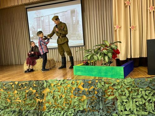 Ребята исполнили песни о войне и сыграли небольшой спектакль на военную тему.