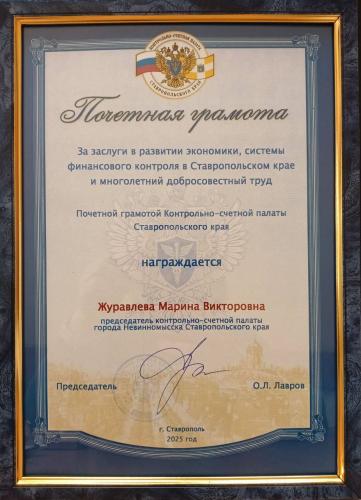 НовостиПризнание на краевом уровне.24.11.2025 Признание на краевом уровне. Марина Журавлева награждена Почетной грамотой Председатель контрольно-счетной палаты города Невинномысска Ставропольского края Марина Викторовна Журавлева награждена Почетной грамотой Контрольно-счетной палаты Ставропольского края за заслуги в развитии экономики, системы финансового контроля в Ставропольском крае и многолетний добросовестный труд. Торжественное вручение состоялось на VIII заседании Совета контрольно-счетных органов при Контрольно-счетной палате Ставропольского края, где награду вручил председатель Контрольно-Счетной палаты Ставрополья Олег Лавров. Поздравляем Марину Викторовну с заслуженной наградой! Ваш профессионализм и ответственный подход — большой вклад в эффективное развитие нашего города. Желаем новых успехов и дальнейшей плодотворной работы на благо Невинномысска! Последние новости09.12.2025 Сегодня День Героев Отечества.07.12.2025 Депутаты городской Думы Невинномысска и сотрудники аппарата Думы города приняли участие в сдаче норм ГТО 06.12.2025 «Невинномысск глазами детей». 05.12.2025 Сегодня, 5 декабря, в России отмечается День добровольца 04.12.2025 Ввыездное совещание комитета по промышленности, энергетике, строительству и жилищно-коммунальному хозяйству в городе Невинномысске 04.12.2025 Праздничное мероприятие, посвященное Дню матери, прошло в МБОУ СОШ №1 им. С.М. Кирова 04.12.2025 В Невинномысске прошел краевой инклюзивный фестиваль «Вместе – дорогою добра» 04.12.2025 Объединяя усилия ради безопасности детей 04.12.2025 3 декабря в Невинномысском психоневрологическом интернате состоялось мероприятие, посвящённое Международному дню инвалидов. 04.12.2025 Стартовал городской этап Всероссийского конкурса «Воспитатель года России – 2026» |