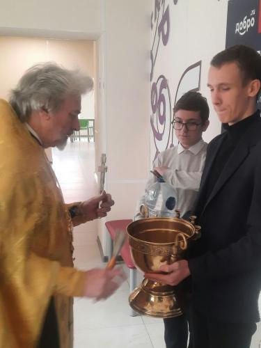 Сегодня, в день крещения Господня, Протоирей Василий Шитик, в СОШ 3 поздравил всех учеников с праздником и окропил святой водой.
