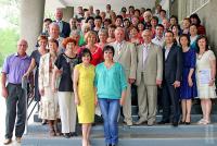 НовостиНЭТ собрал друзей на юбилей!02.06.2014 Ярким торжественным мероприятием коллектив Невинномысского энергетического техникума (НЭТ) отметил в кругу друзей, ветеранов и выпускников разных лет свой 45-й день рождения. Под аплодисменты коллектива и гостей праздника на большом экране ДК «Энергетик» картинками из прошлого сменялись кадры о периодах становления техникума, лица первых преподавателей, первых выпускников, моменты учебы и минуты творческих побед… НЭТ — первый на Юге России и до сих пор единственный в Ставропольском крае энергетический техникум — начал свою историю 22 мая 1969 года с приказа, подписанного министром энергетики и электрификации СССР П. Непорожним. Приказом были организованы и три специальности, действующие до сих пор: электротехническая, теплотехническая и электромонтажная (в 2014 г. дополнительно откроются новые специальности: гидроэнергетические установки, релейная защита и автоматизация электроэнергетических систем, экономика и бухучет в электроэнергетике). Началось бурное развитие техникума: в 1970 г. было построено общежитие №1, в 1973 г. — производственный корпус НЭТ и большой спортивный зал, в 1979 г. — Дворец культуры «Энергетик», в 1982 г. — общежитие №2. — За годы своего существования техникум внёс неоценимый вклад в подготовку работников энергетической отрасли, создание и укрепление образовательного потенциала Невинномысска, Ставропольского края и России, — сказал в приветственном обращении к собравшимся директор НЭТ Игорь Минайло. — Сегодня техникум является одним из лучших учебных заведений Ставропольского края, авторитет которого основан на многолетних традициях, опыте, мастерстве преподавателей и хорошей учебно-лабораторной базе. Здесь созданы все условия для получения профессионального образования и самоутверждения каждого студента как активной, творческой, конкурентоспособной личности. Сегодняшние выпускники востребованы на рынке труда, что свидетельствует о высоком профессионализме мастеров и преподавателей и эффективном партнёрстве с крупными предприятиями региона. Особые слова поздравлений И. Минайло адресовал ветеранам: «Благодаря вашему труду появился и сформировался бренд — Невинномысский энергетический техникум, за которым стоят качество образования и высокий уровень воспитательной работы». Сегодня НЭТ гордится своими ветеранами, первыми преподавателями, мастерами своего дела. Это первый директор техникума, заслуженный учитель школы РФ, Почетный энергетик, Почетный гражданин Невинномысска Геннадий Васильевич Стрижаков; заслуженные учителя школы РФ — Надежда Георгиевна Никитина, Надежда Григорьевна Стрижакова; преподаватели-спецпредметники, ставшие Почетными энергетиками РФ, — Лиля Арамовна Асланова, Эльвир Федорович Маслов, Александр Семенович Первушин, Фома Яковлевич Чернецкий, Константин Анисимович Чернышов, Вера Николаевна Терентьева, Сергей Павлович Быков, Евгений Алексеевич Мещеряков, Лариса Васильевна Юрченко и многие другие. Нынешний коллектив техникума — это 135 работников, которые продолжают традиции, постоянно повышают свой профессиональный, творческий и интеллектуальный уровень. — Вы успешно выполняете поставленные задачи, — обращаясь к коллегам, сказал И. Минайло, — подтверждением чему стало полученное на днях свидетельство о госу