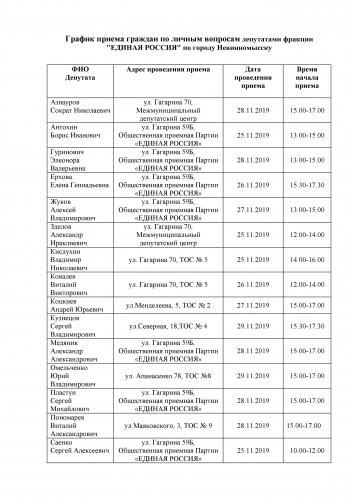 График приема граждан по личным вопросам депутатами фракции "ЕДИНАЯ РОССИЯ" по городу Невинномысску