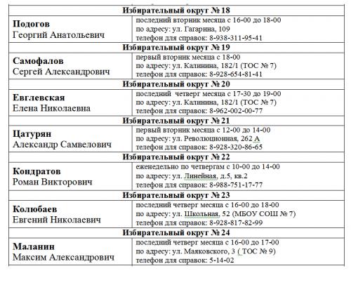 ГРАФИК приема избирателей депутатами Думы города Невинномысска VII созыва