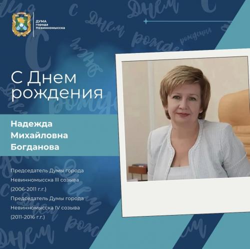 НовостиУважаемая Надежда Михайловна!02.04.2026 Сегодня отмечает юбилей Надежда Михайловна Богданова, человек, чья профессиональная судьба неразрывно связана с историей Невинномысска. Уважаемая Надежда Михайловна! От депутатов Думы города Невинномысска примите самые искренние и теплые поздравления с Днем рождения! Надежда Михайловна возглавляла Думу города lll (2006-2011 г.г.) и lV созывов (2011-2016 гг.), а с апреля 2015 по ноябрь 2016 года исполняла полномочия главы города Невинномысска. Её путь в муниципальной службе начинался с образования: учитель математики, завуч, директор школ №12 и №15, методист отдела образования. За плечами — Ставропольский педагогический институт и обучение по программе «Муниципальное управление» в Академии профессиональной переподготовки. Труд Надежды Михайловны отмечен высокими наградами: Почетные грамоты Министерства образования РФ, Губернатора Ставропольского края, знак «Отличник народного образования РФ». Уважаемая Надежда Михайловна, примите искреннюю благодарность за многолетний добросовестный труд на благо нашего города, за вклад в развитие местного самоуправления и образования. Желаем крепкого здоровья, душевного тепла, внимания близких и благополучия! Последние новости08.04.2026 День сотрудников военных комиссариатов.08.04.2026 «Импульс добра» 05.04.2026 Открытие III этапа Всероссийских соревнований Детской лиги «ЛОКОДЗЮДО». 05.04.2026 Депутат Думы города Александр Михеев принял участие в экопятнице вместе с коллективом МБОУ СОШ №8. 03.04.2026 Депутаты Думы Виталий Анатольевич Шиганов ,Александр Самвелович Цатурян, и Максим Александрович Маланин пришли навестить детей. 02.04.2026 Уважаемая Надежда Михайловна! 02.04.2026 «Есть результат» 31.03.2026 В Невинномысске обсудили эффективность работы управляющих компаний 31.03.2026 «Абилимпикс 27.03.2026 Депутат городской думы Мария Викторовна Шевченко провела приём избирателей в ТОС №7. |